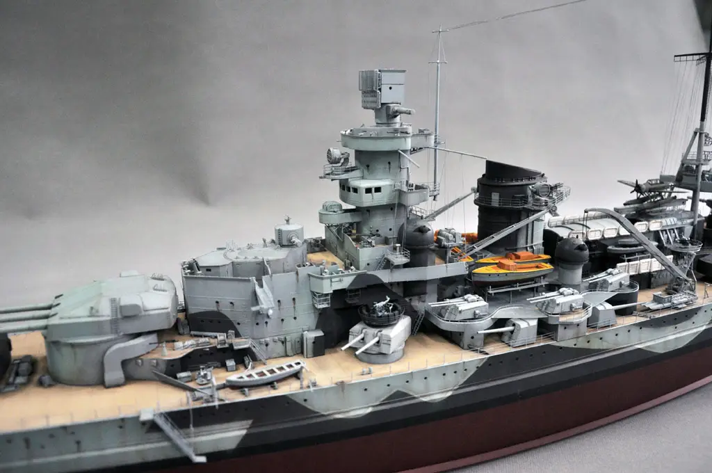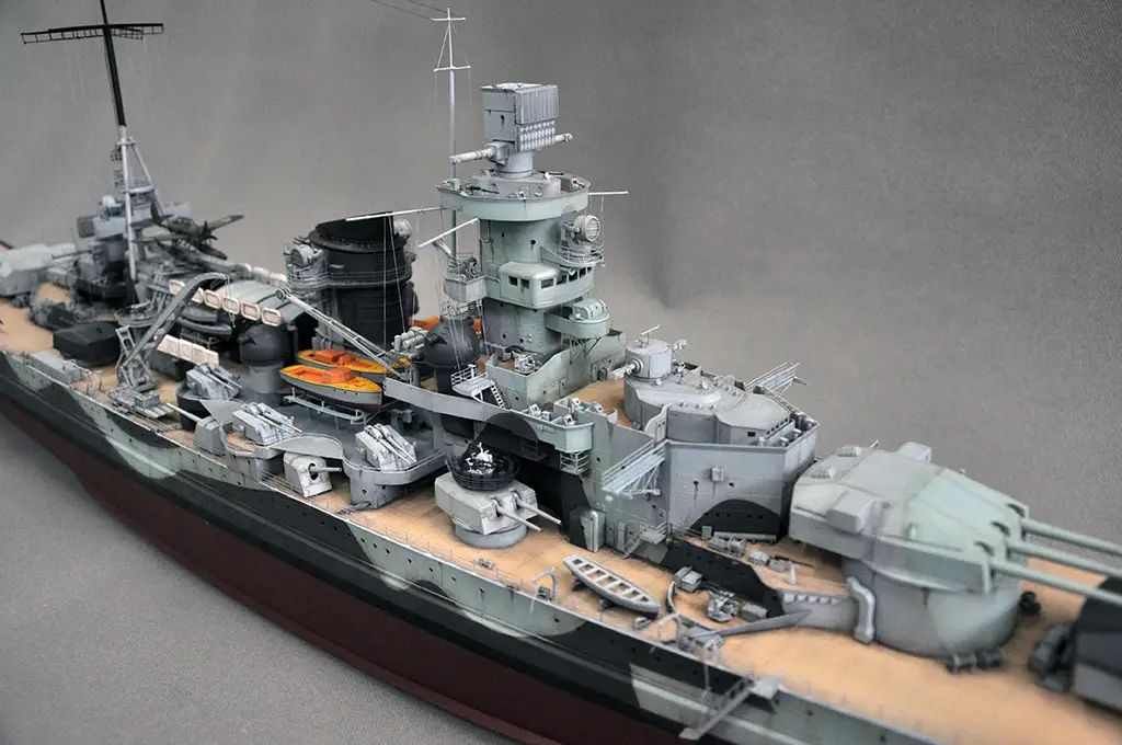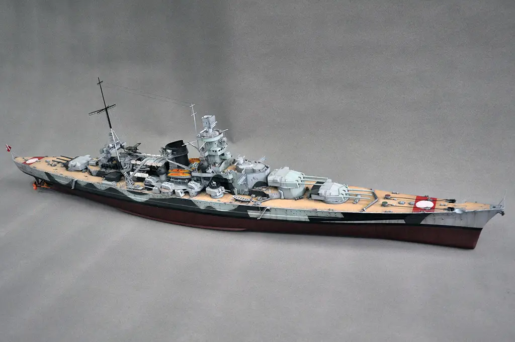 Plastikový model lodi Scharnhorst v měřítku 1:200.