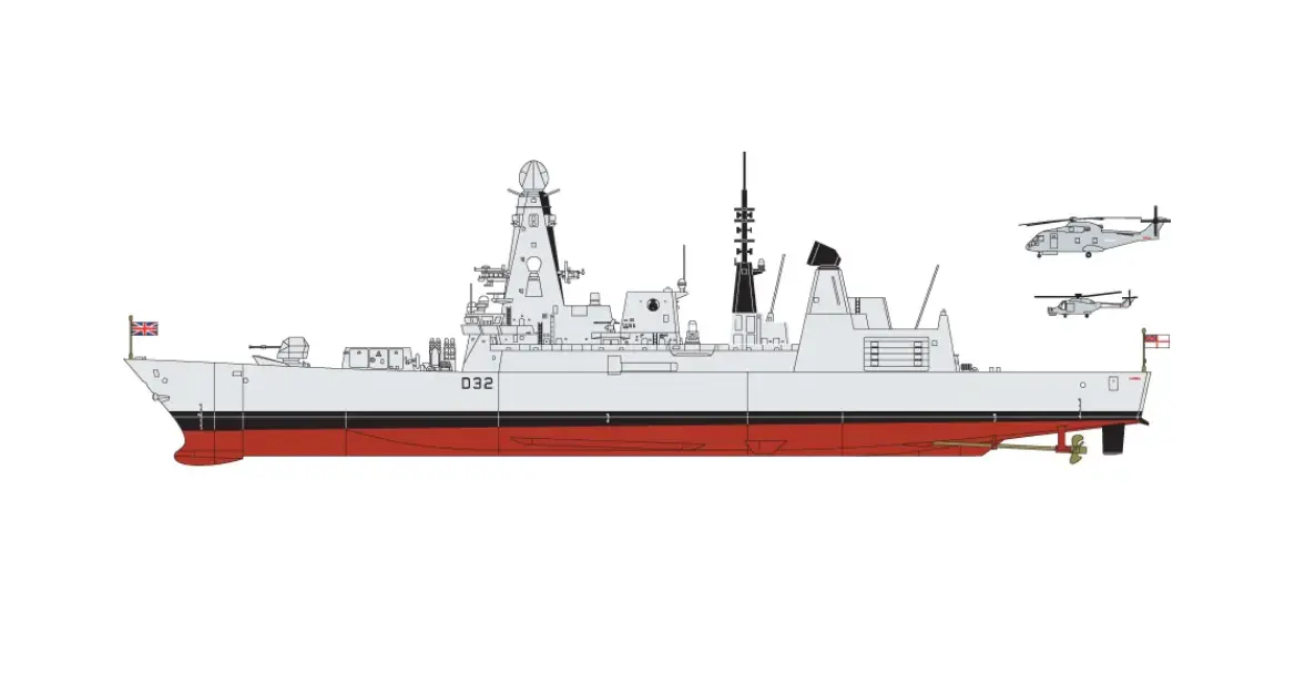 Plastikový model lodi třídy Daring (typ 45) v měřítku 1:350.