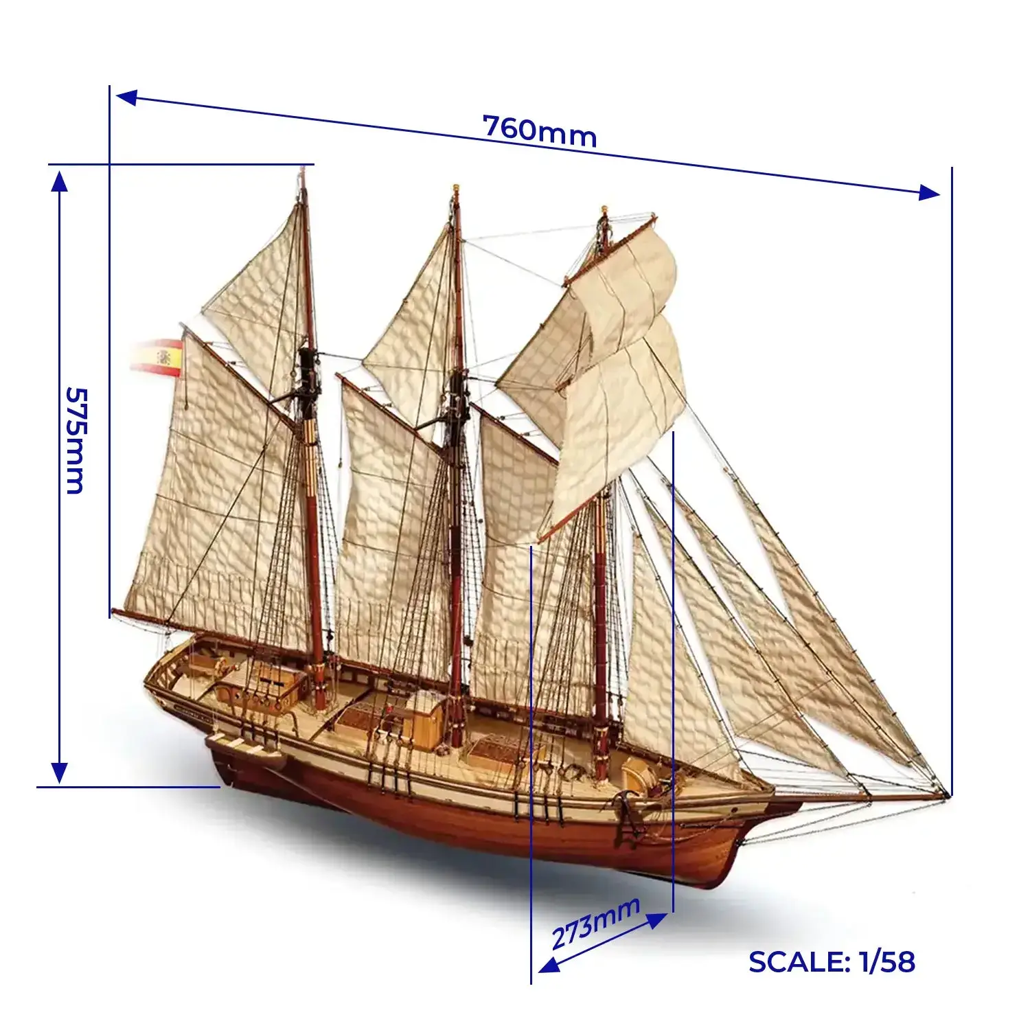 Dřevěný model lodi Esmeralda v měřítku 1:58 je vhodný dárek: