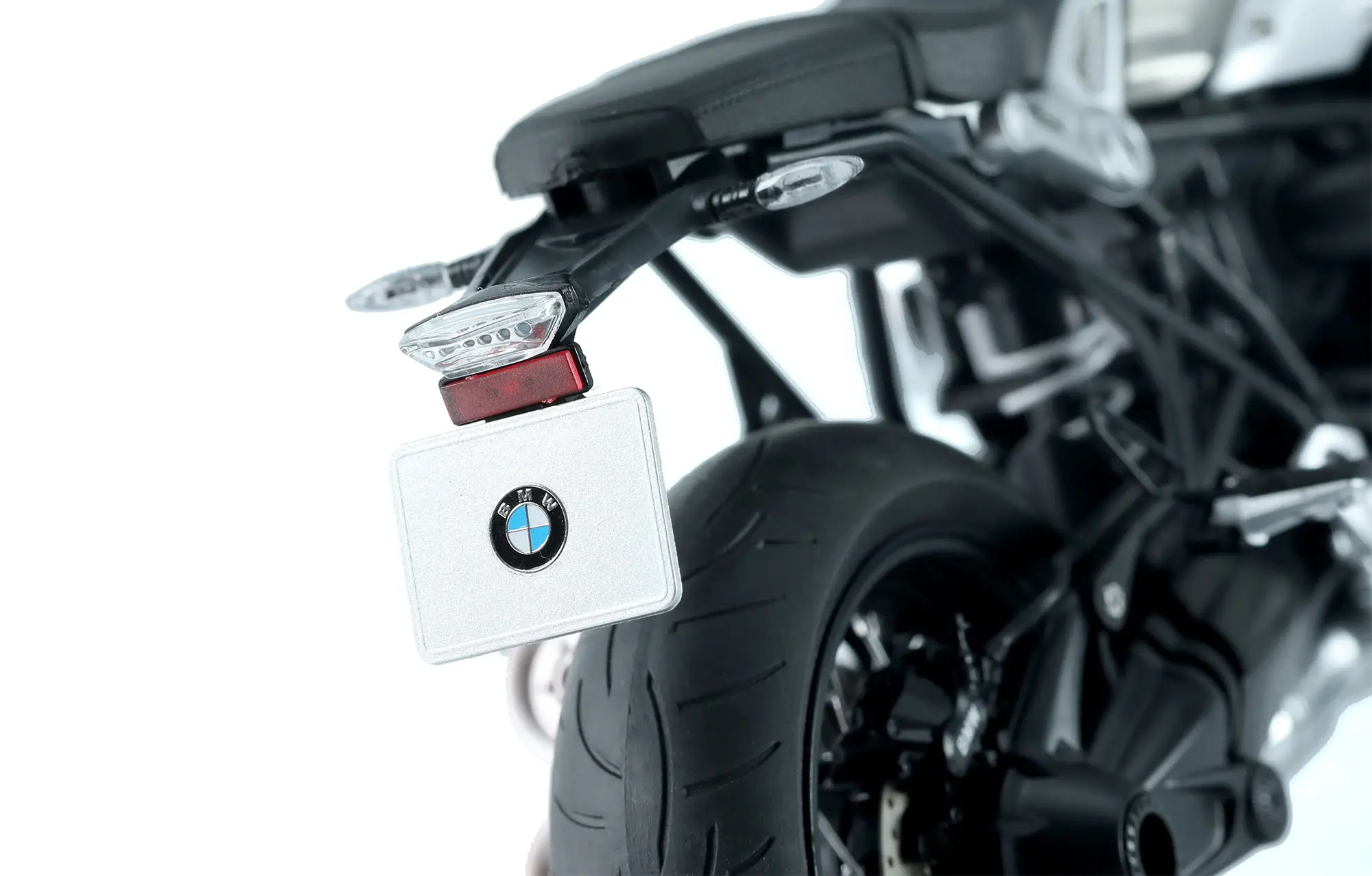 “This BMW R nineT is an official licensed model kit. Thanks to its snap-fit design and pre-colored parts, there’s no need to paint the model during the assembly process. Front and rear shock absorbers and the steering damper are movable. Parts like the wheel spokes, headlamp bowl and front section of the exhaust pipe are electroplated. All lights are represented by clear parts. Reflective mirror foil is provided for the rearview mirrors. This kit includes metallic fuel tank, seat hump cover and engine cylinder, and vinyl seats and backrest, and stainless steel PE parts and pre-colored PE parts. This model can be built as a single seat or double seat version.”