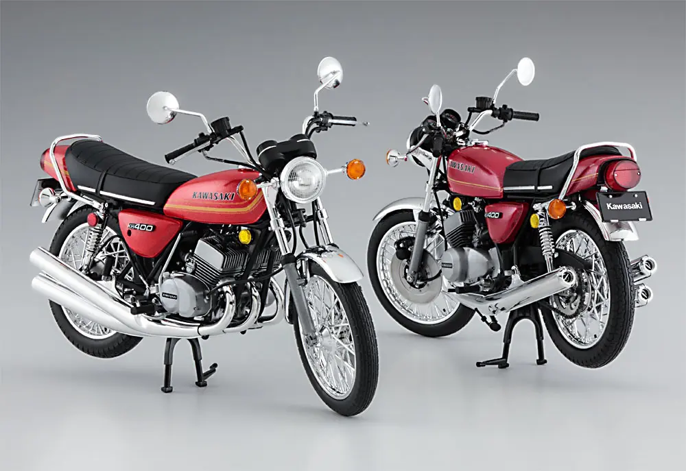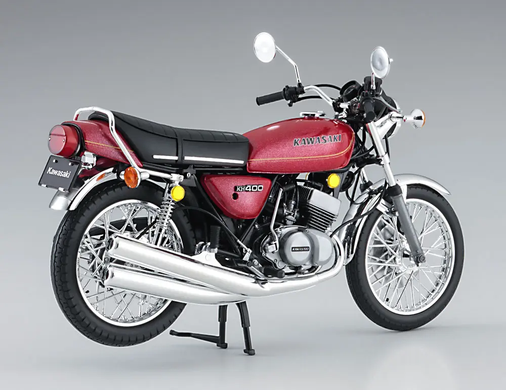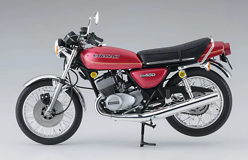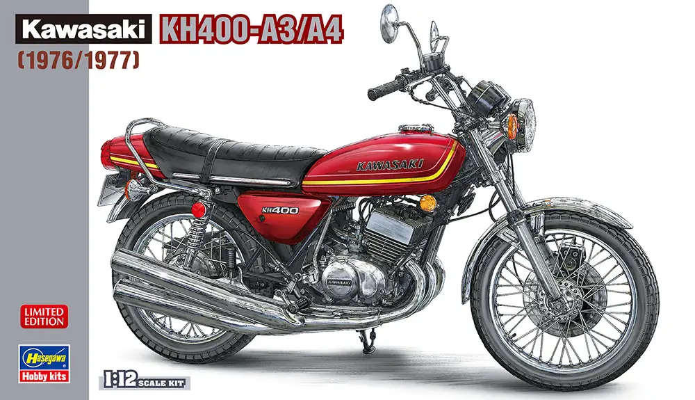 A teď firma Hasegawa Corporation představuje licencovaný velmi detailní výrobek z limitované série „Vintage Motorcycle“ Kawasaki KH400-A3/A4 roku 1976 v měřítku 1:12.