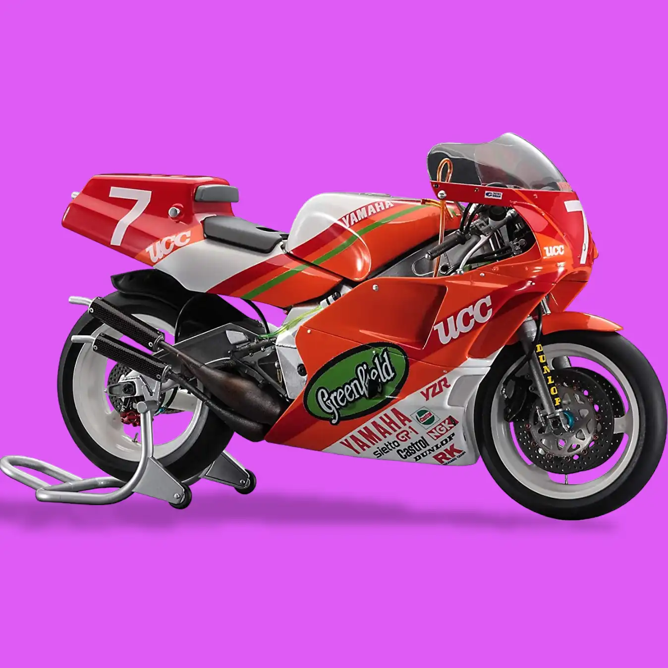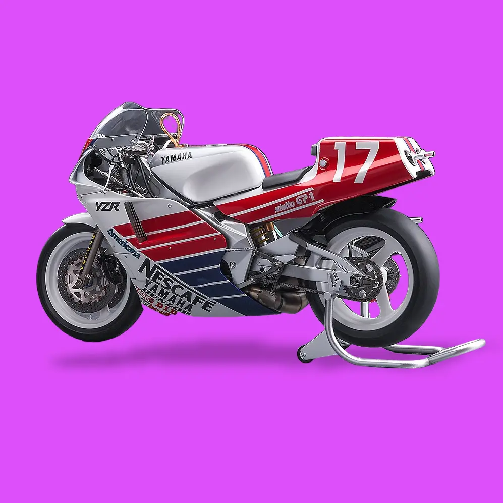 Plastikový model motorky Yamaha YZR500 v měřítku 1:12.