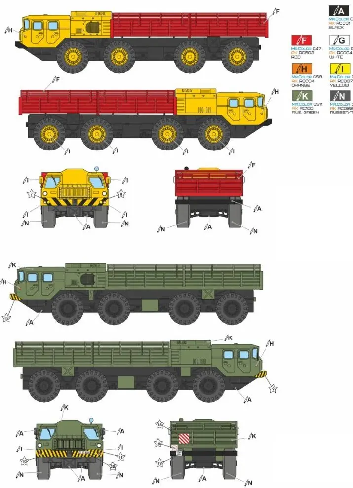 Podvozek 8*8 sloužil k obsluze odpalovacích zařízení raket Elbrus, Temp, Pioneer, Topol a tak dále.