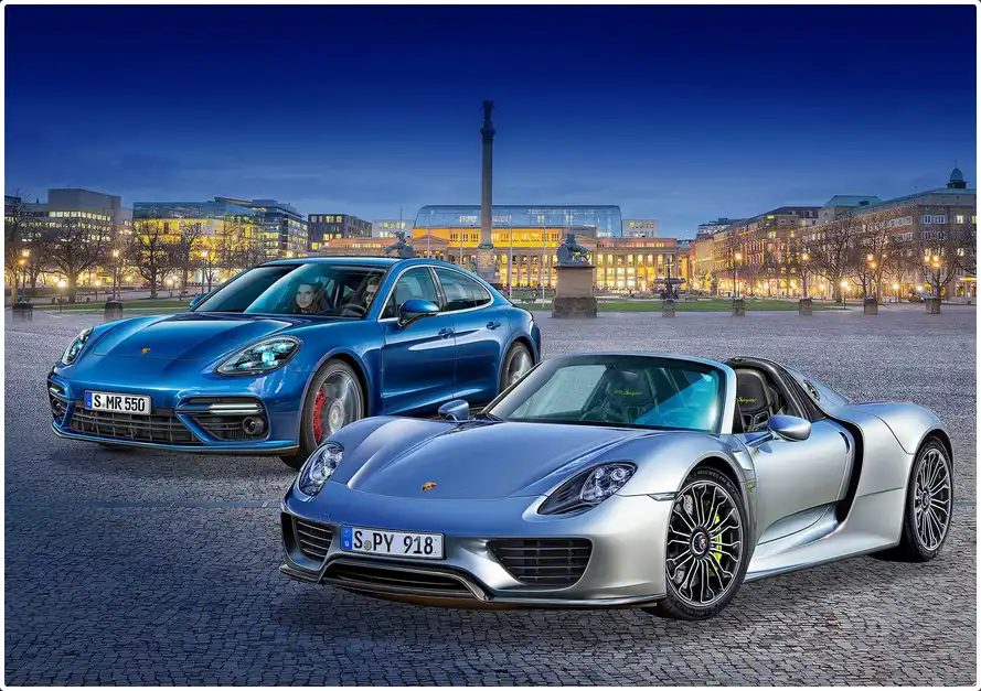 Plastikové modely aut Porsche Panamera a Porshe Spyder [1:24] je vhodný dárek: